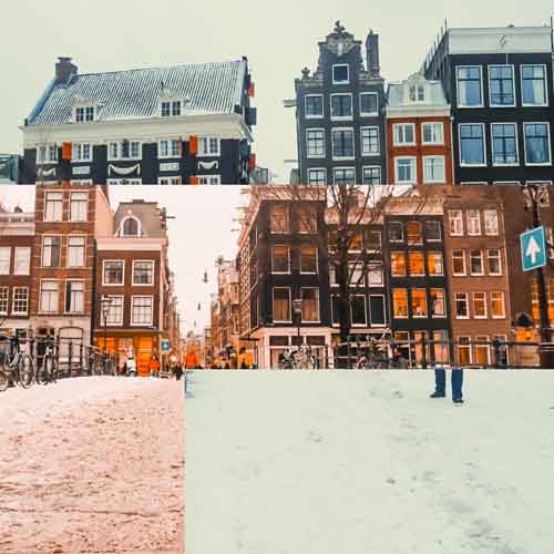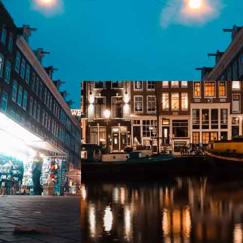 The idea here was born from an attempt to capture more than just a moment in time-seeking to blend the iconic imagery of Amsterdam with the abstract techniques we had been experimenting with in previous projects in the studio. After working on the abstraction of letters, numbers & icons, we wondered if we could apply a similar deconstruction to images rather than creating traditional videos or vlogs. The question was: how much could we capture in a single frame?