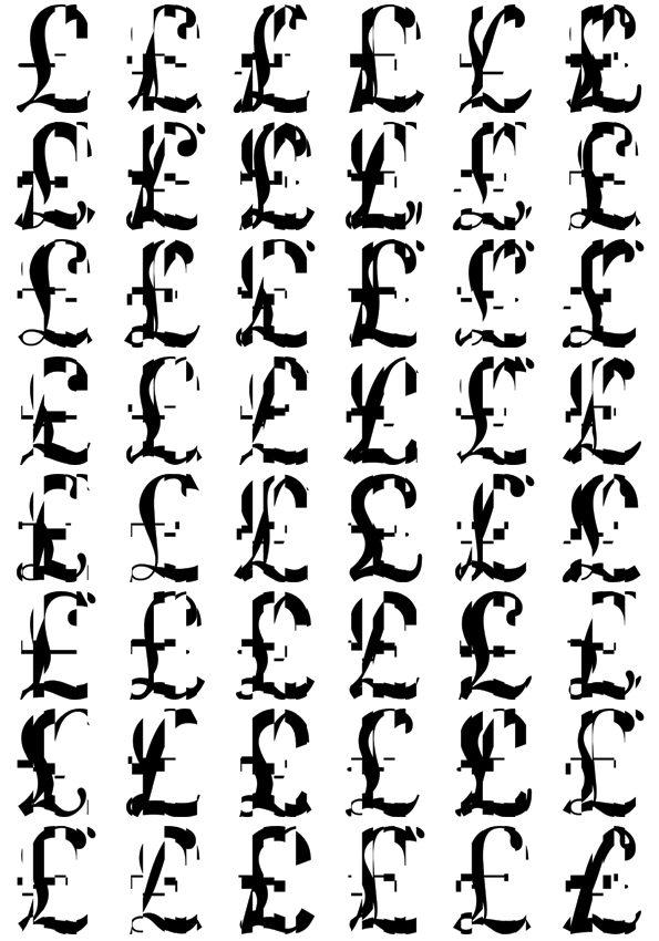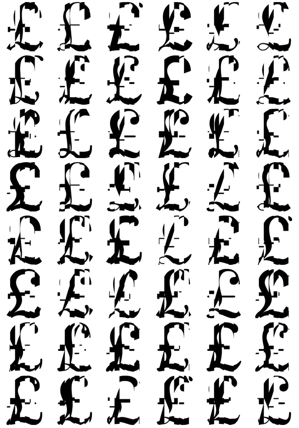 The British pound, more than just currency, has become an enduring emblem of Britain itself. It speaks to a continuity that persists through centuries of change. For this reason, we focused on deconstructing the pound symbol (£) across different fonts, weights, and styles. We then fragmented and reconstructed it, exploring how no matter how it is broken apart, the essence of the symbol-and what it represents-remains unmistakably the pound.