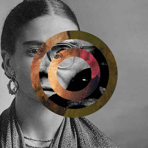 In this continuation of our exploration of iconic self-portraits, we moved away from the fixed grid structure and adopted a more organic approach to deconstruction and reconstruction. Instead of breaking the portraits into uniform squares, we deconstructed each image using circles of varying sizes. Each portrait was fragmented into a set number of circular sections, with each circle taken from a different portrait, then reassembled to form a new, hybrid image.