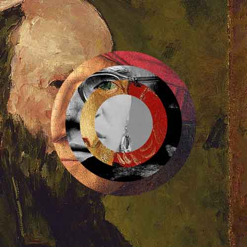 The process involves selecting circular fragments from multiple self-portraits and reapplying them in unexpected ways to reconstruct the original image. The result is a disorienting but intriguing blend of familiar features, distorted by the circular forms and varying sizes. Each reassembled portrait becomes a mosaic of overlapping identities, where the circular fragments both conceal and reveal different aspects of the original works.