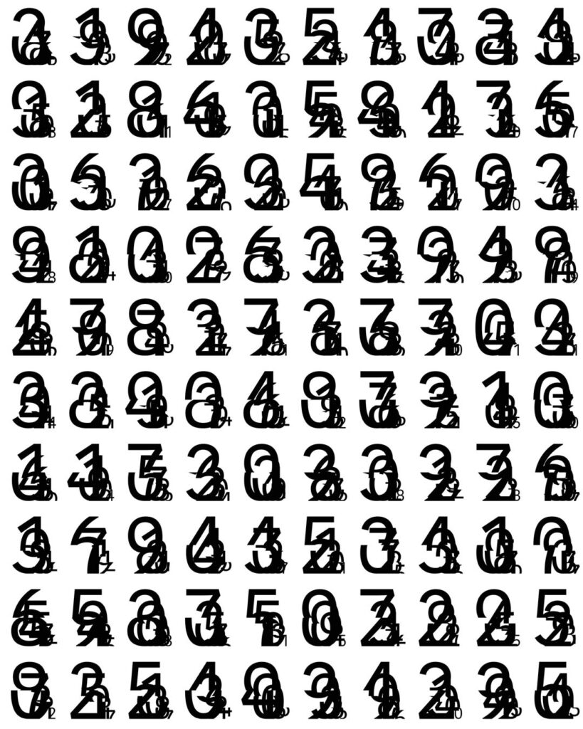 Using different methods, we would break each number down, sometimes splitting them into halves, thirds, or even fifths. In some compositions, the top and bottom halves of a number would be reassembled, creating a familiar yet altered form. In other instances, more complex patterns emerged as we experimented with layering and fragmenting the numerals further. The aim was to challenge the simplicity of these symbols, showing how something as basic as a number can be reimagined into abstract forms while still conveying its essence.