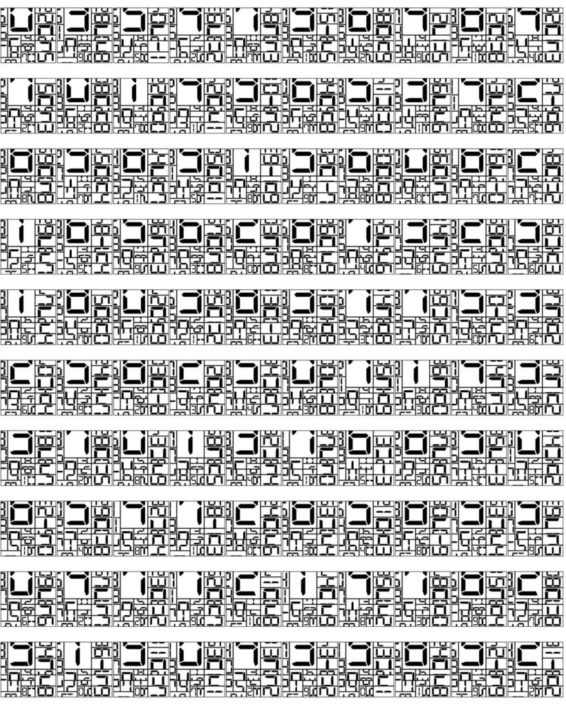 In this project, we shifted our focus from deconstructing individual letters and numbers to breaking down the canvas itself. We divided the canvas into an abstract, geometric grid, where each square became a new space for experimentation. Each grid square was populated with a number, and through this process, we generated thousands of unique compositions.
