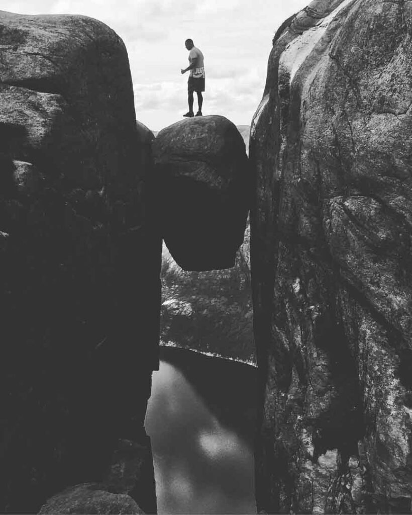 I’ll admit, the boulder looks more impressive in photos than in person, but don’t let that take away from the wild thrill of standing on it. There’s about a meter of space on top to stand comfortably, but the drop below is immense, and the nerves kick in when you’re standing on it. It’s one of those experiences where you feel both exhilarated and terrified at the same time.