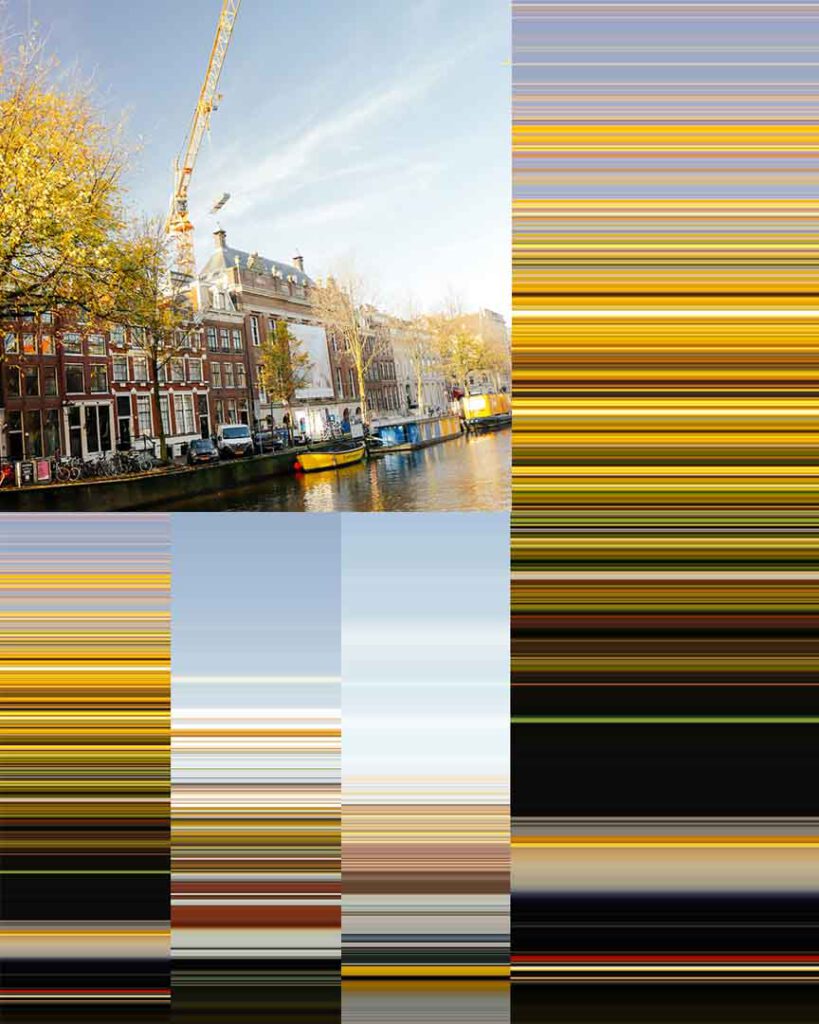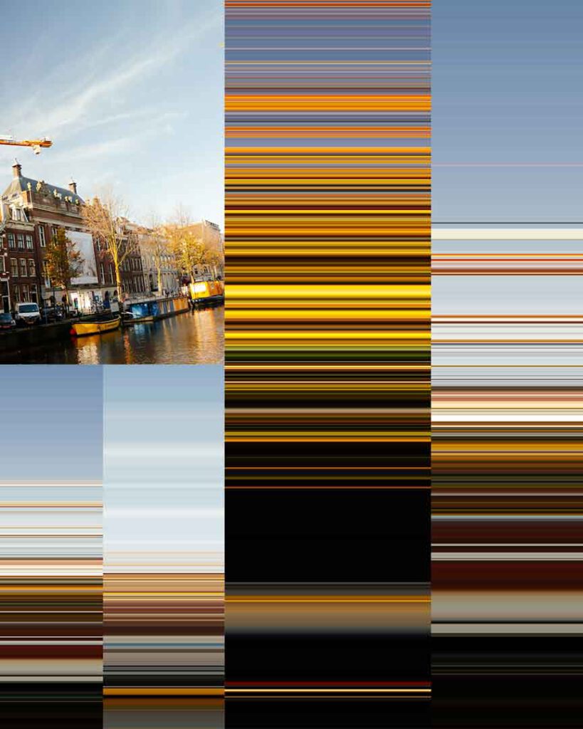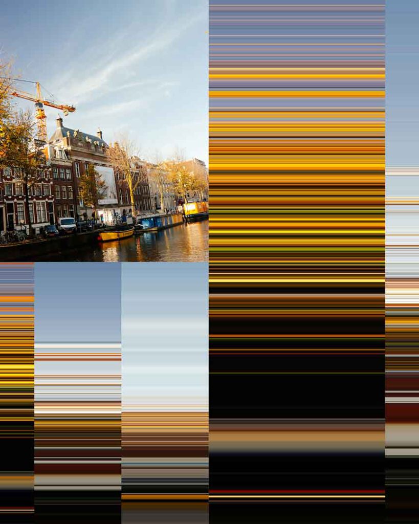 In this phase of our exploration, we applied pixel manipulation techniques to images of various urban locations, expanding our work beyond specific landmarks. Drawing inspiration from digital art, we used the pixel selector tool in Photoshop to create a new layer of abstraction. By selecting individual rows of pixels-either horizontally or vertically-we extended these lines across the canvas, resulting in streaks of color and texture that transformed the original images.