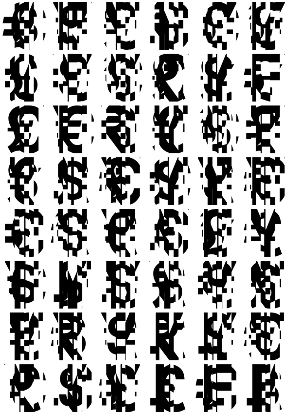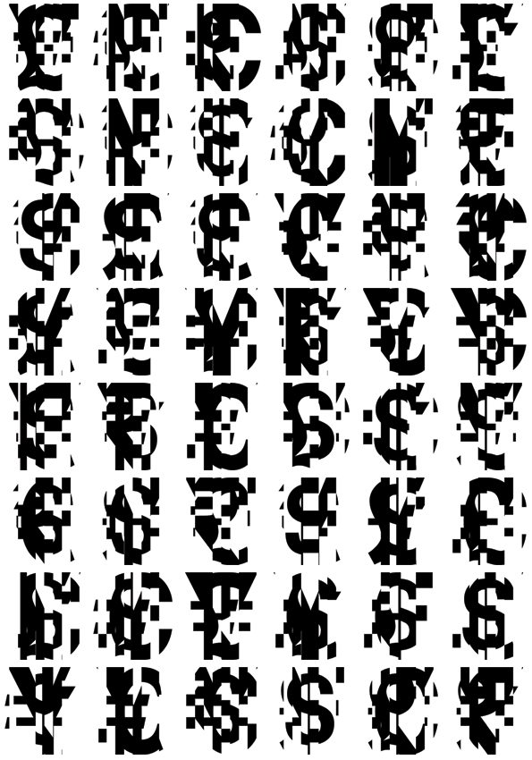 In this part of the project, we took the major global currency symbols (£, $, ¥) and deconstructed them before reconstructing them. It’s intriguing, after all, that 1 Swiss franc holds more value than 1 Indian rupee. Isn’t it?