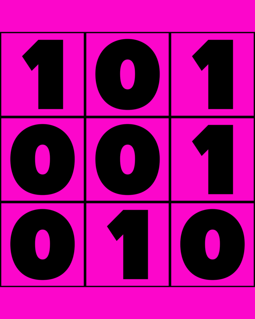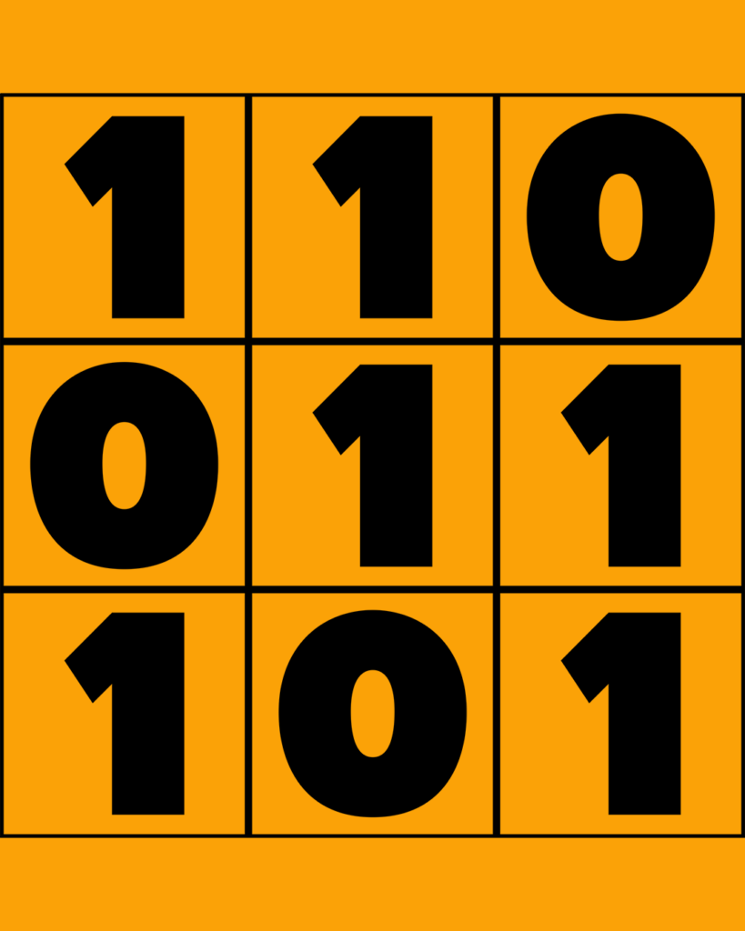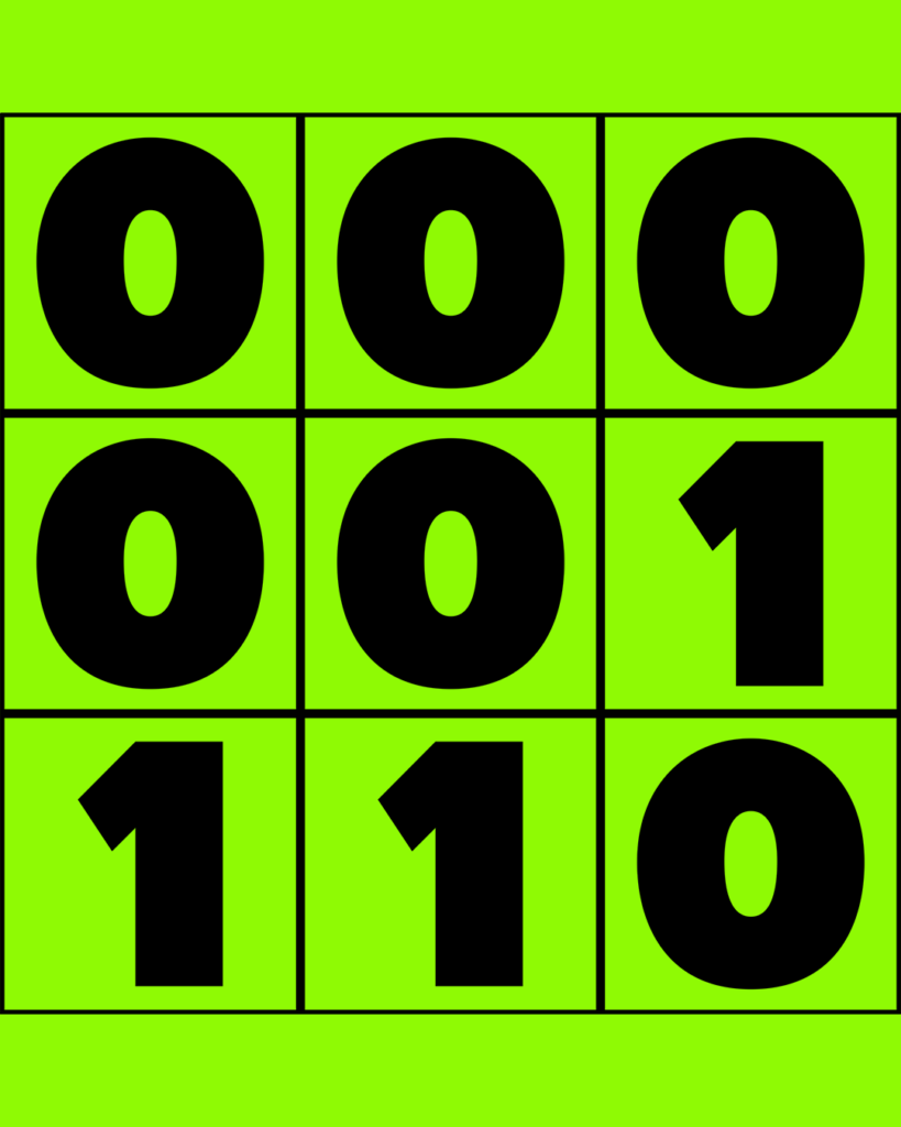 We created 3×3 grids, positioning either a one or a zero in each square as if playing a version of tic-tac-toe. Each grid is unique, meticulously tracked and traced to ensure that no two are the same. The result is a collection of seemingly familiar patterns, yet each one remains distinct-just as every digital sequence that powers our technologies is both deeply familiar and completely original.